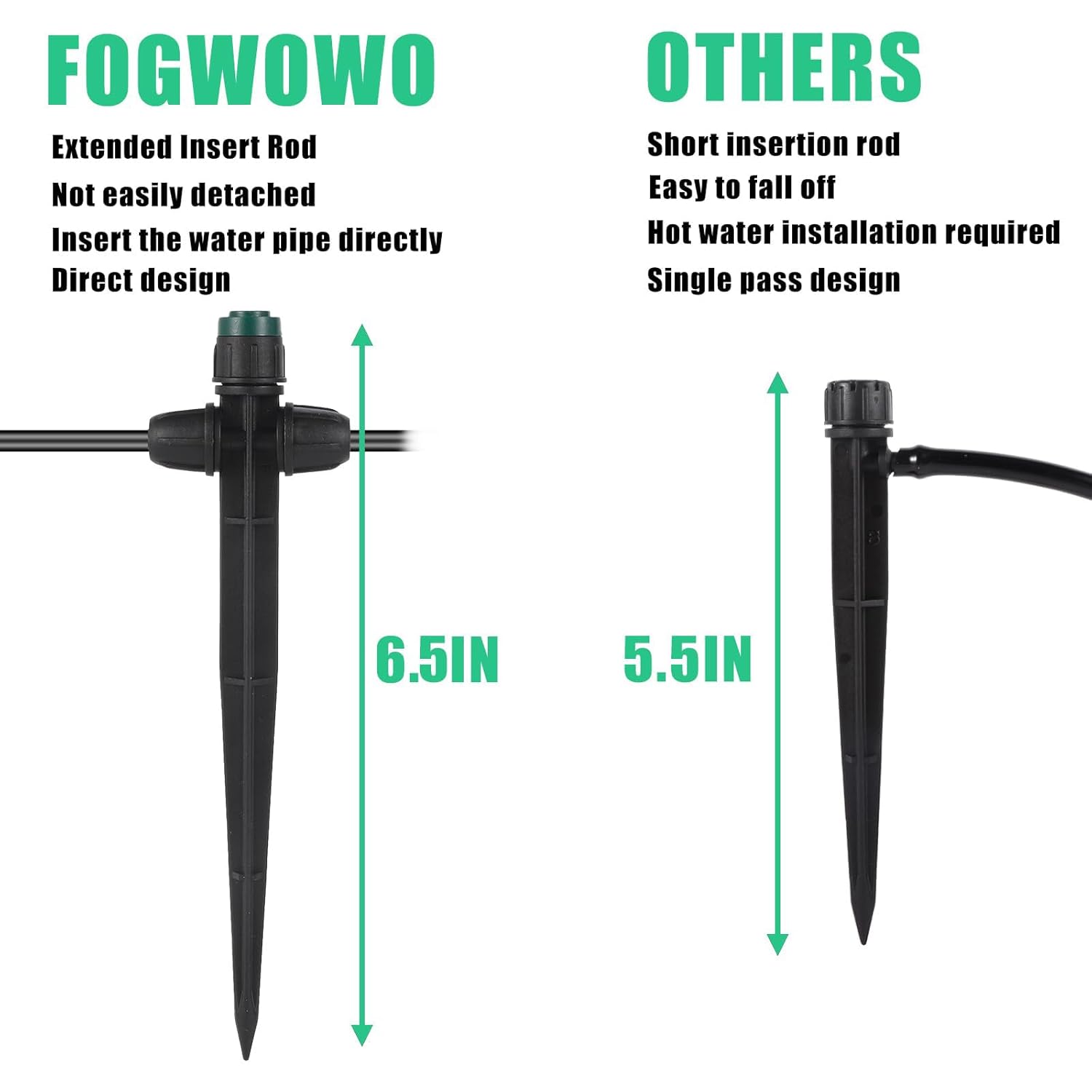 • 【Measurement】Emitters:works perfectly with 1/4 inch drip irrigation tubing, ideal for garden irrigation watering system;Dripper stake height: 6.5 inch.Higher stake means wider water flow range;Both sides of drip emitter can be connected to 1/4 inch tubing, optimizing your irrigation system