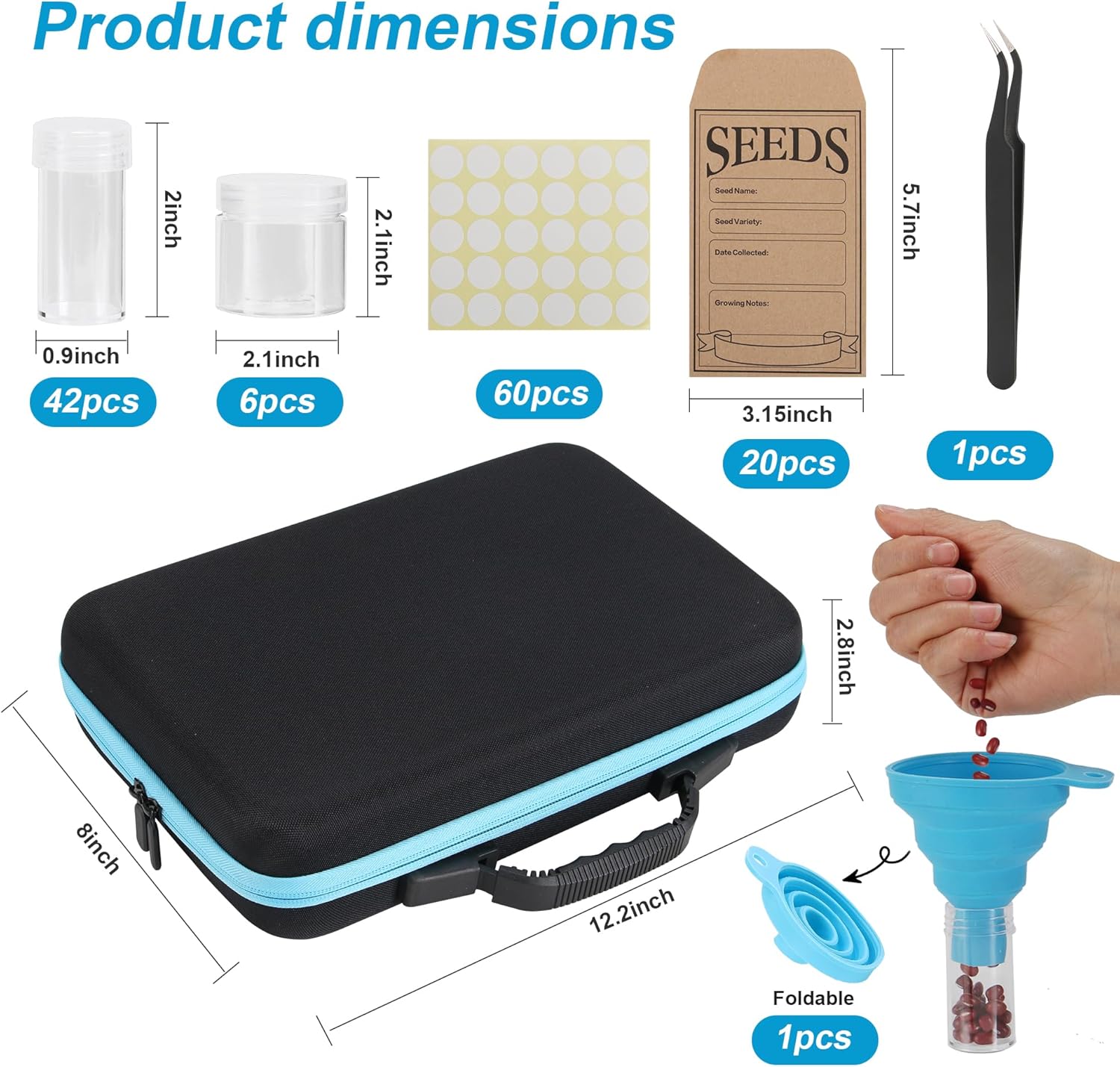 • GARDEN SEEDS SAVING KIT: Includes 48 organizer containers with 6 big and 42 small size, along with 20 seed envelopes, 1 storage carrier case, and 48 more labels, 1 funnel and tweezer. Centrally organize and safeguard your seeds from sunlight and moisture.