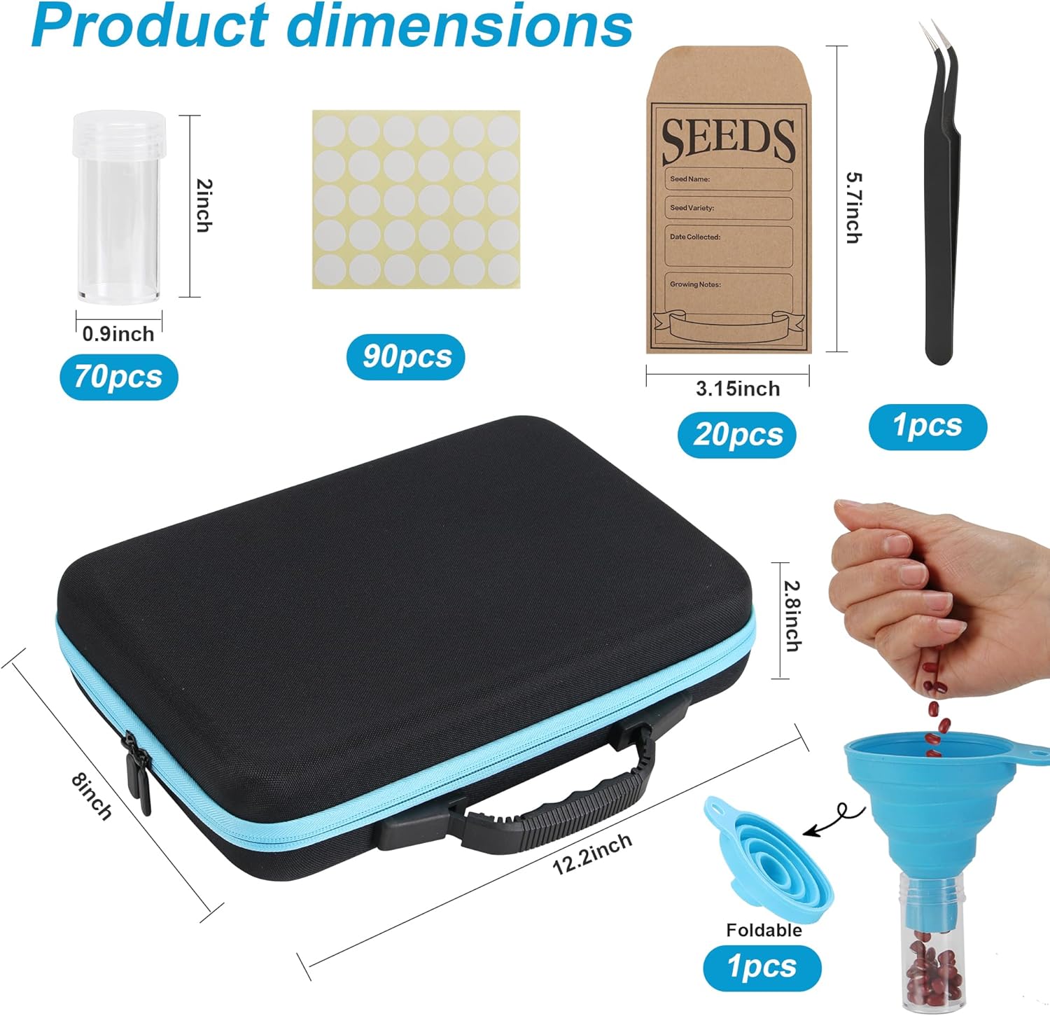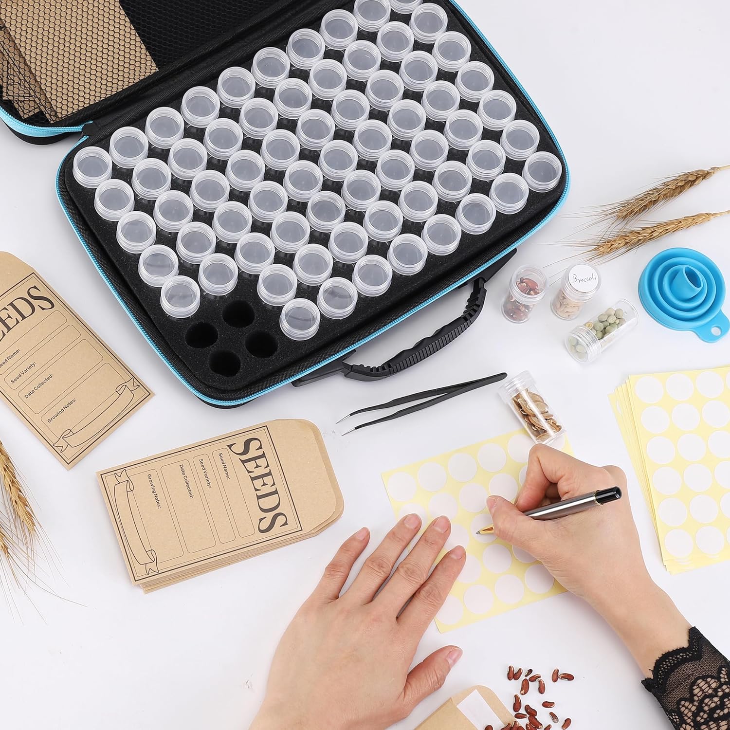 • GARDEN SEEDS SAVING KIT: Includes 70 organizer containers, 20 seed envelopes, 1 storage carrier case, 70 more labels, 1 funnel, and tweezer, Keep all your seeds centrally organized and protected from sunlight and moisture.