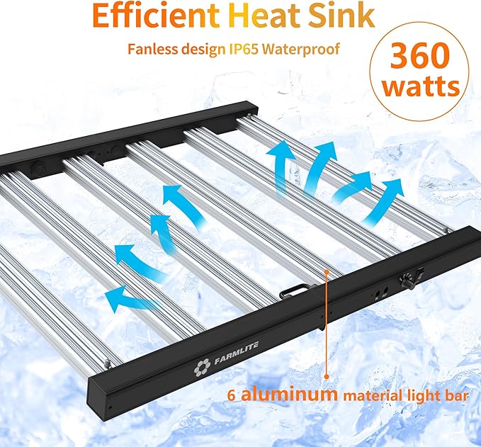 • 【Efficient Heat Dissipation and No Noise】Our grow lights are made of 6 lightweight aluminum bars, which has efficient heat dissipation and cooling functions.it's powerful heat dissipation ability that no need to buy more cooling devices.This led plant light has no fan, there will be no noise.it is very light weight and IP67 waterproof,so it's easy to carry and install.