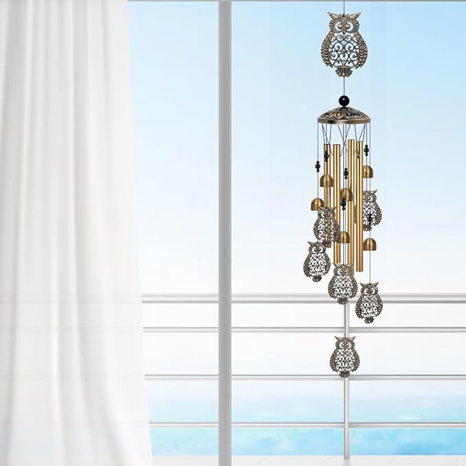 - High Quality Craftsmanship: Hand-made owls wind chimes are made of high-quality aluminum nylon braided rope. Light weighted and easy to hang. Waterproof and windproof. Easy to clean. The aluminum surfaces have a clear protective coating to withstand changing weather. Not easy to rust or fade, and can be used for a long time. The resonance time of aluminum wind chimes is longer than other sounds. bringing lasting musical beauty.
