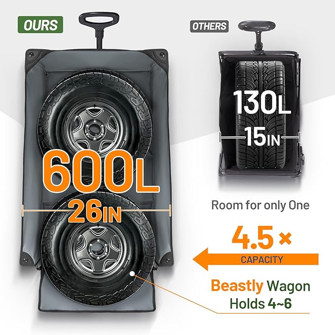 TIMBER RIDGE 600L Beast Wagon 26" W Extra Wide All Terrain Folding w/Big Wheels, Cargo Net & Tailgate, 26" W and 55.25" L, Capacity and 400lbs Heavy Duty Collapsible Portable Cart, Grey