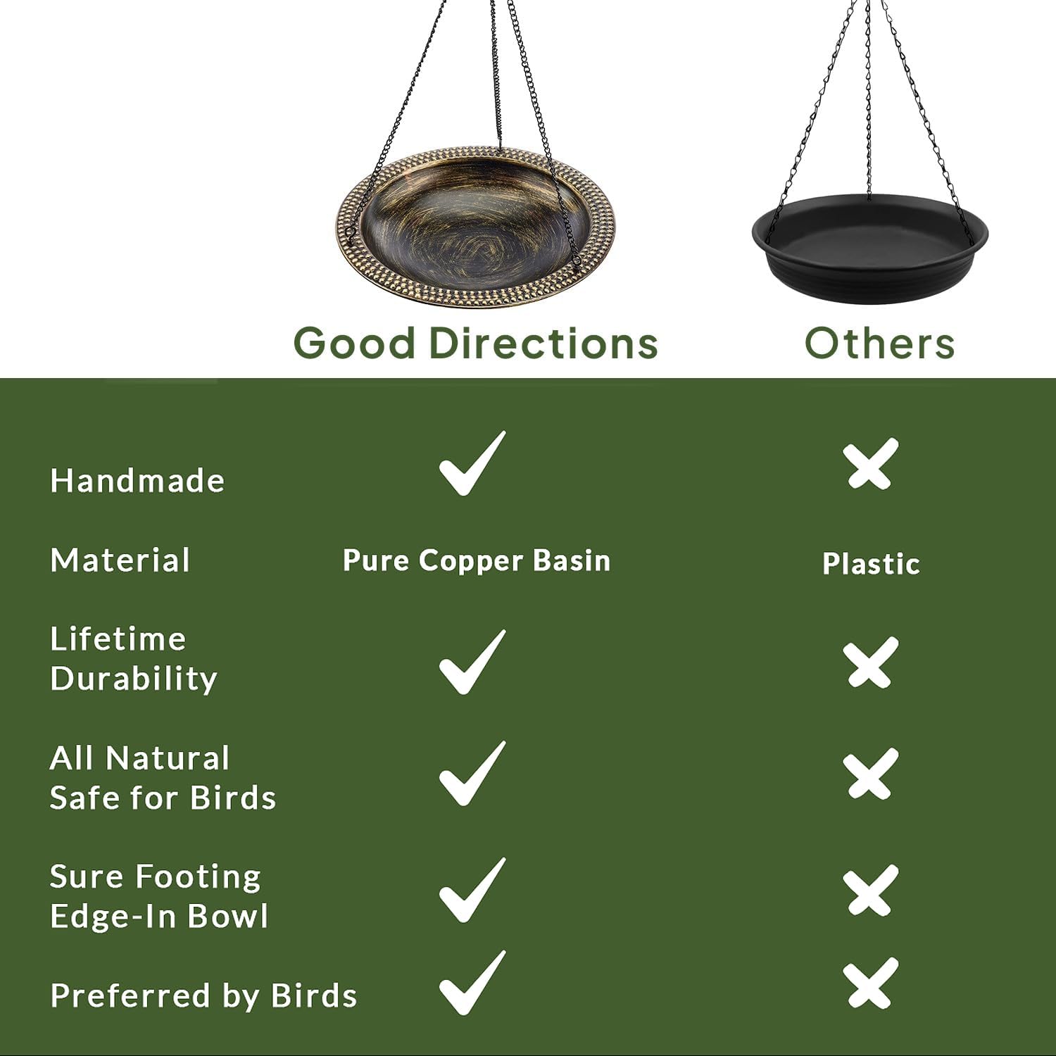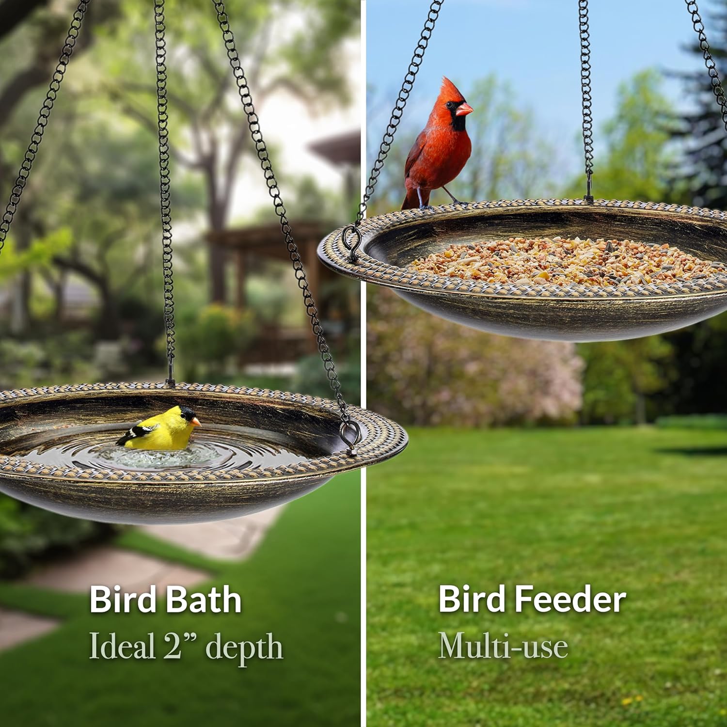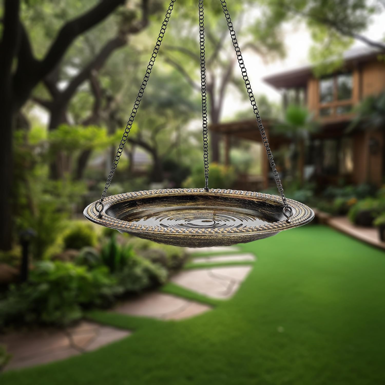 Good Directions Aged Brass Beaded Hanging Bird Bath, Small 13" Diameter