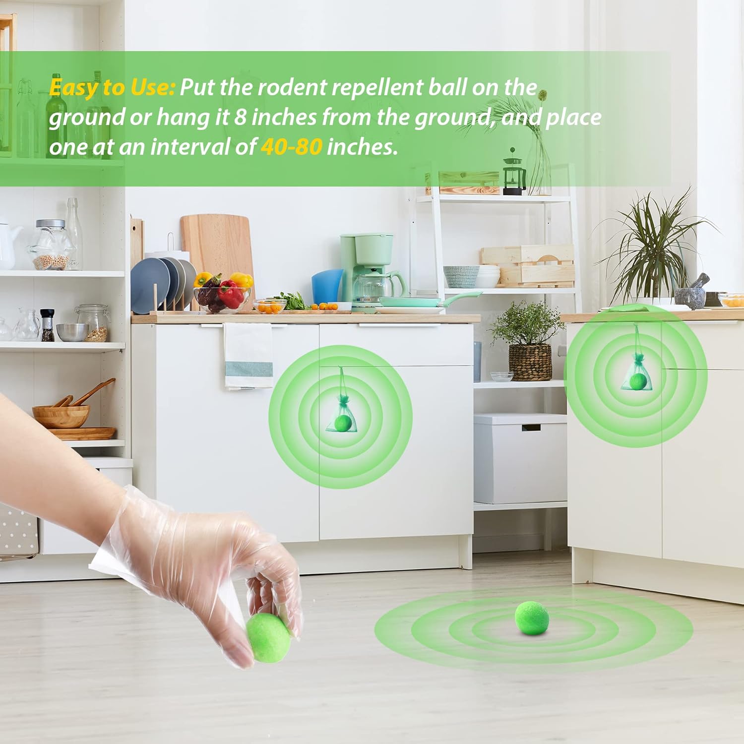 • HOW TO USE: There are 10 vacuum packed rodent be gone balls in every package with 5 net bags. Wear gloves to take out the ball and put it into the net bag for more durable using effect. Then place the bag in the area where you have seen rodent activities or where they will pass such as corners, ceilings, duct openings. You can put it on the ground or hang it 8 inches from the ground, and place one at an interval of 40-80 inches. For better effect, you can place the balls more densely.