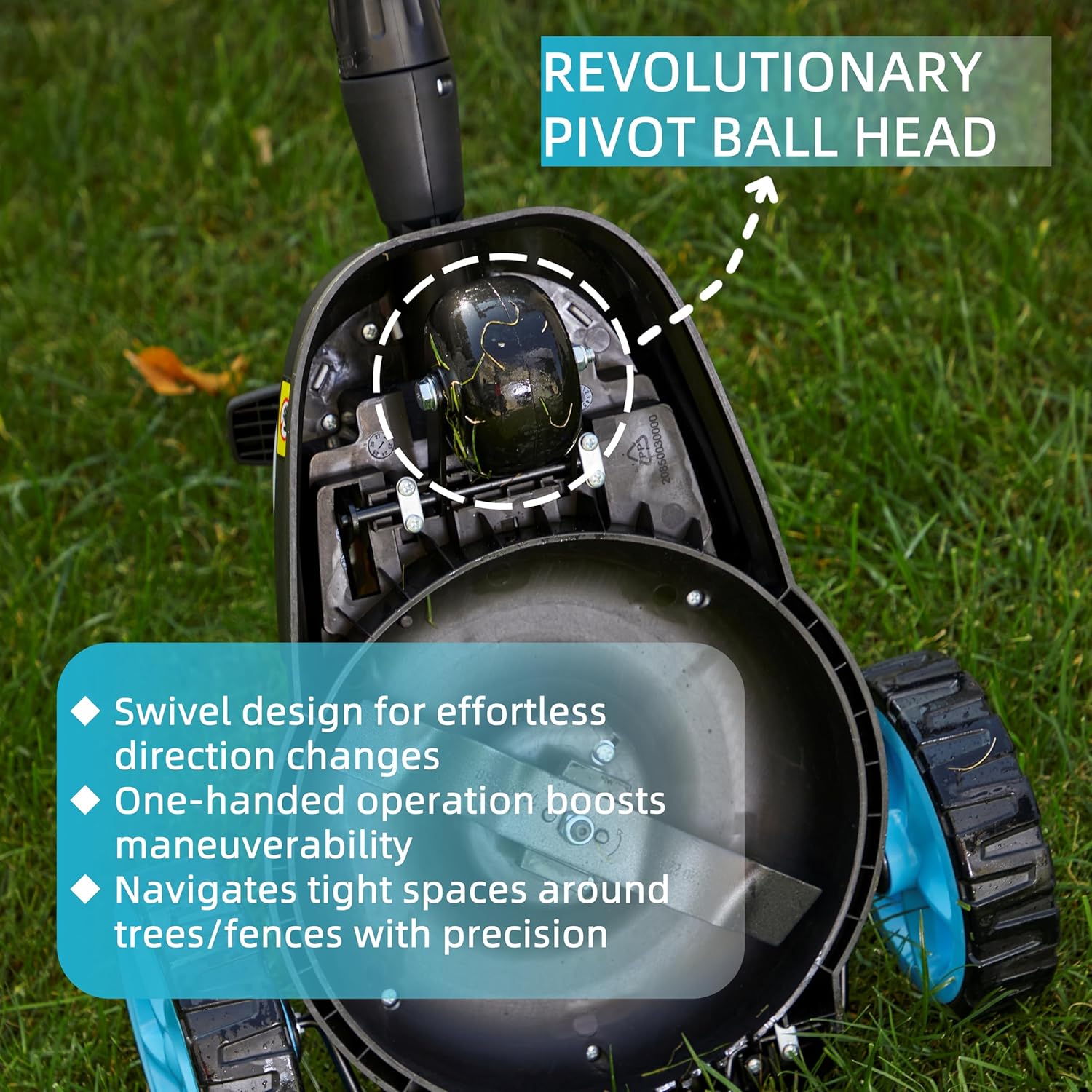 • [Ultra-Light & Compact] Weighing only 5.2kg (11.5lbs without battery), this mini cordless lawn mower is highly maneuverable with pivoting front wheels and one-hand steering—perfect for tight corners and small areas.