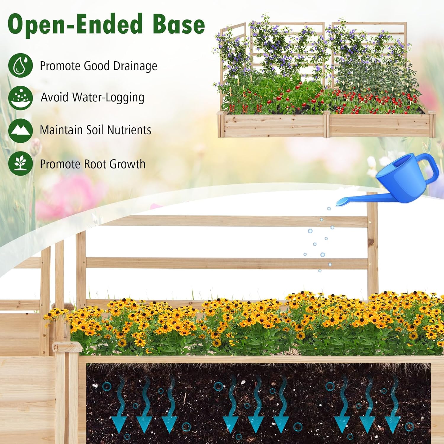 S AFSTAR Raised Garden Bed with 3 Trellis & 2 Planter Boxes, 88" L x 45" W x 43" H Outdoor Wooden Planter Box Kit for Flower Herb Vegetable Fruit Climbing Vines, Gardening Planter for Garden Patio
