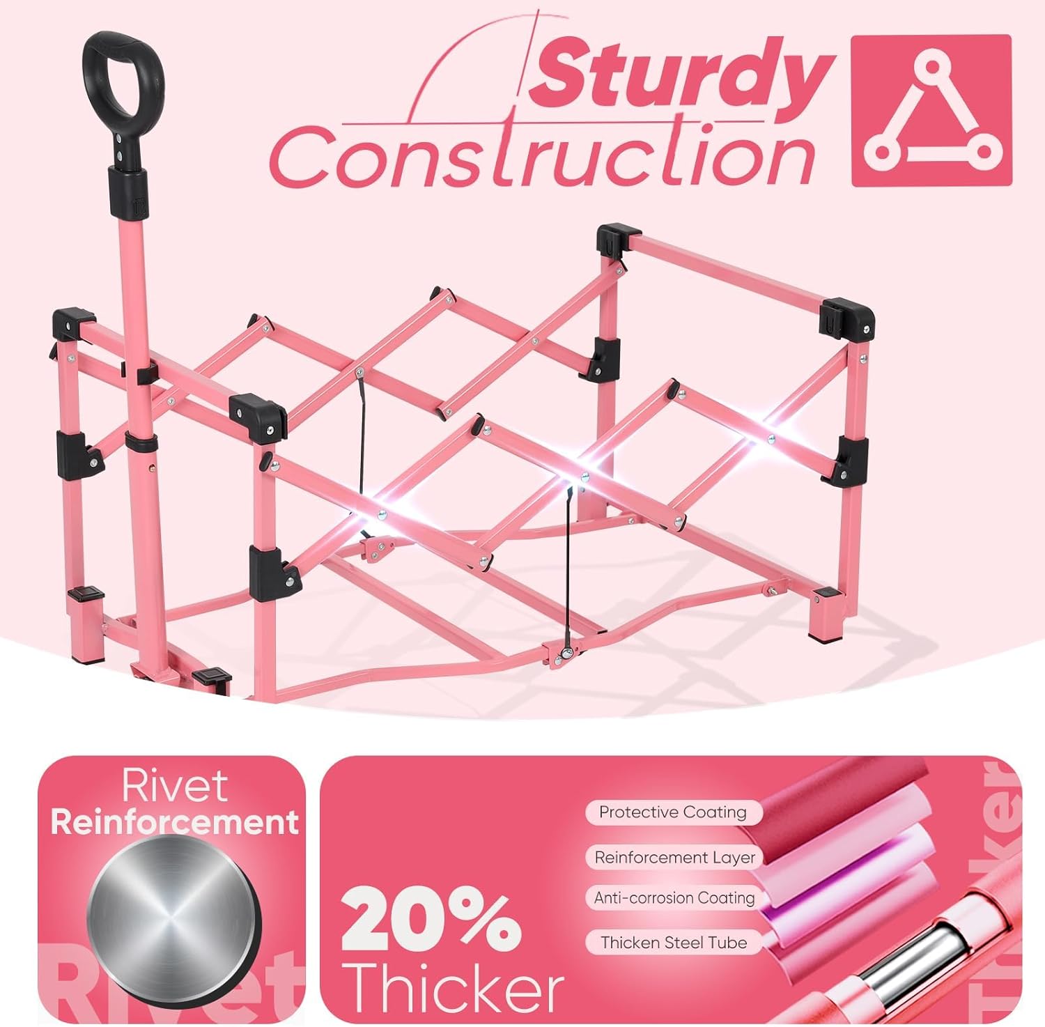 • 𝟐𝟐𝟎𝐋𝐁𝐒 𝐋𝐨𝐚𝐝 𝐂𝐚𝐩𝐚𝐜𝐢𝐭𝐲:Our foldable wagon is built tough with extra-strong steel pipes, 𝟐𝟎% 𝐭𝐡𝐢𝐜𝐤𝐞𝐫 than other wagons. It's like having a trusty friend to carry up to 𝟐𝟐𝟎𝐋𝐁𝐒 with ease. Say goodbye to wobbly carts!