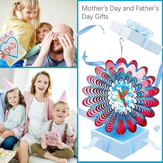 Hummingbird Animated Wind Spinner - 12In 3D Kinetic Hanging Sculpture, Creates Flying Hummingbird Animation Effect | Outdoor Garden Yard Decor, Unique Gift for Mom/Dad/Women/Men & Christmas