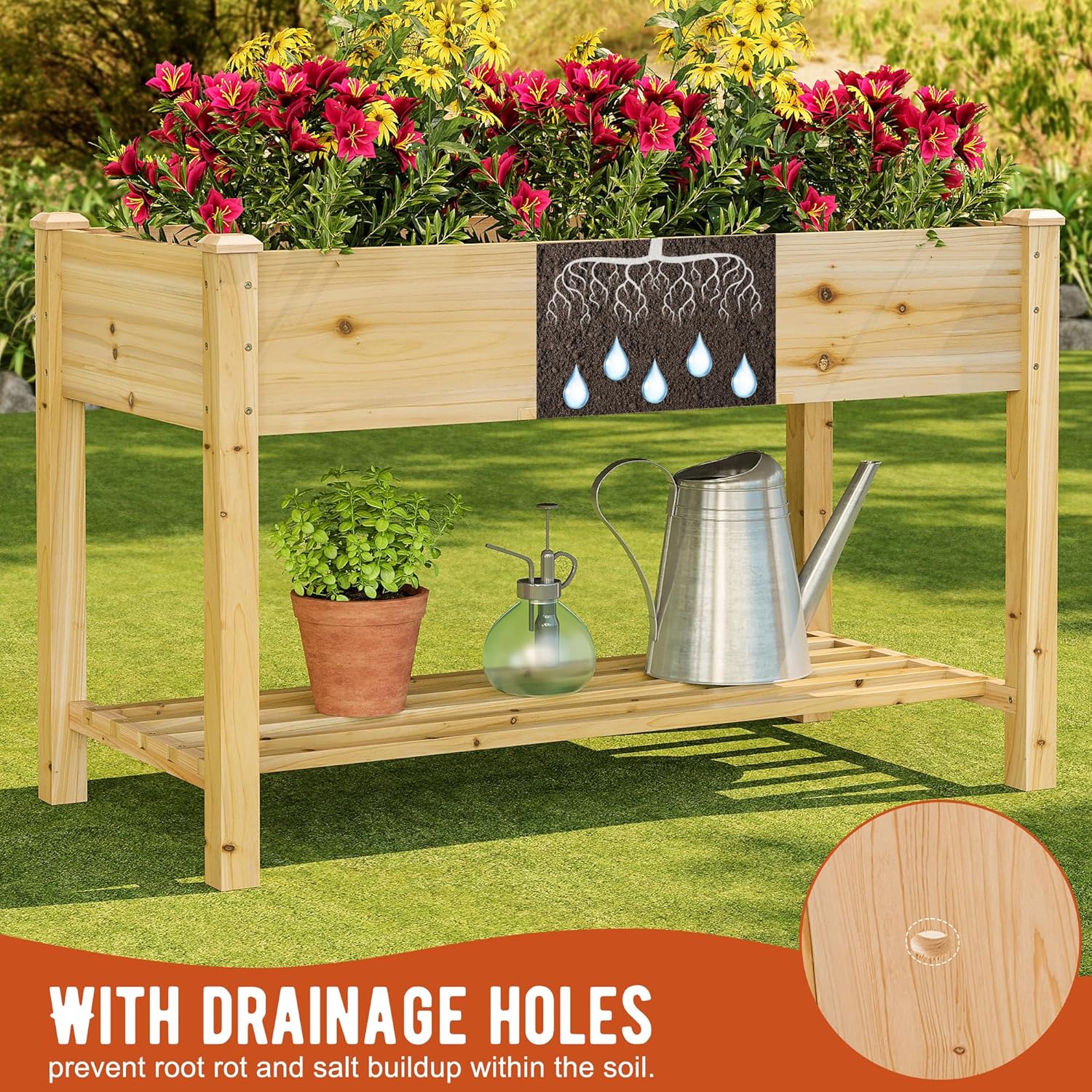 • 【SUITABLE HEIGHT】Our 30.7-inch high design eliminates the need for bending or kneeling while planting, protecting your back and knees as you tend to your garden