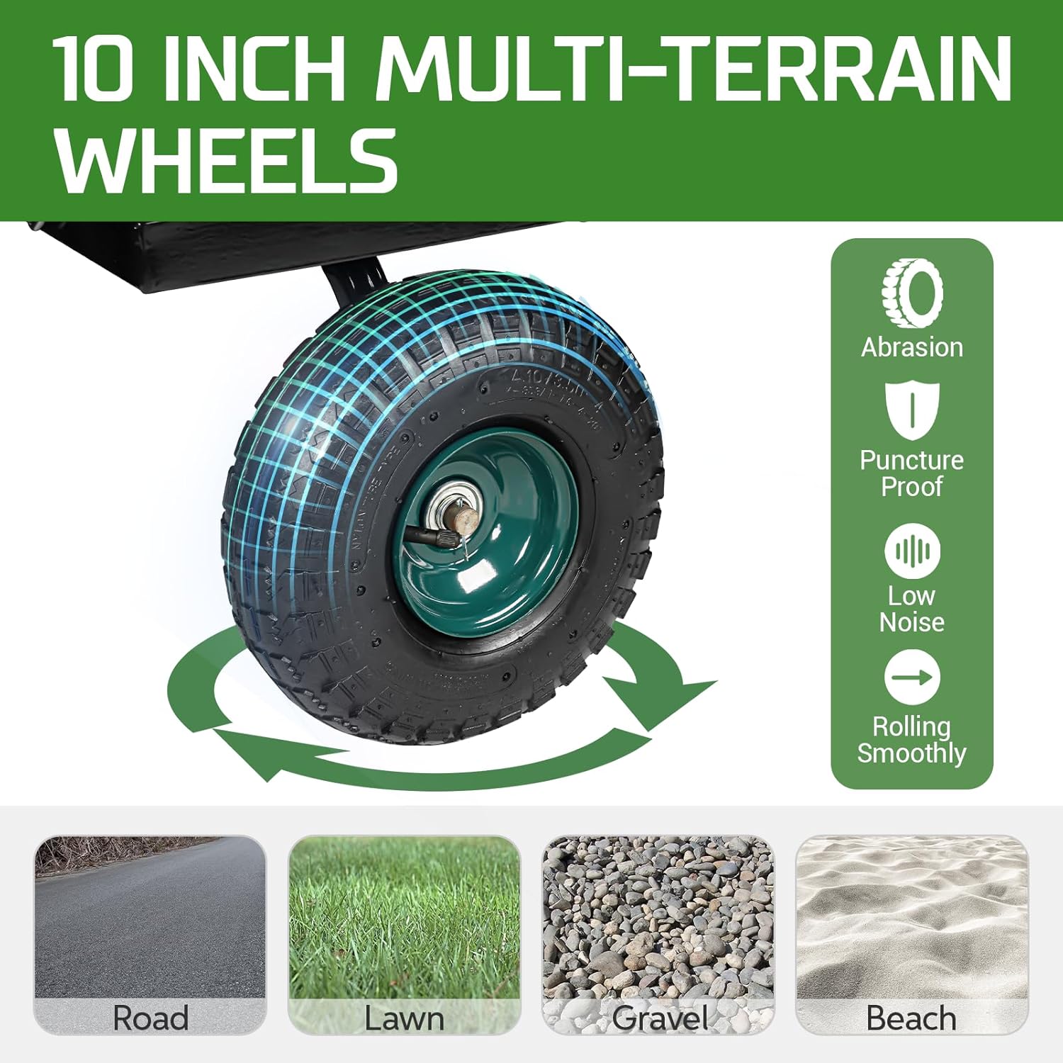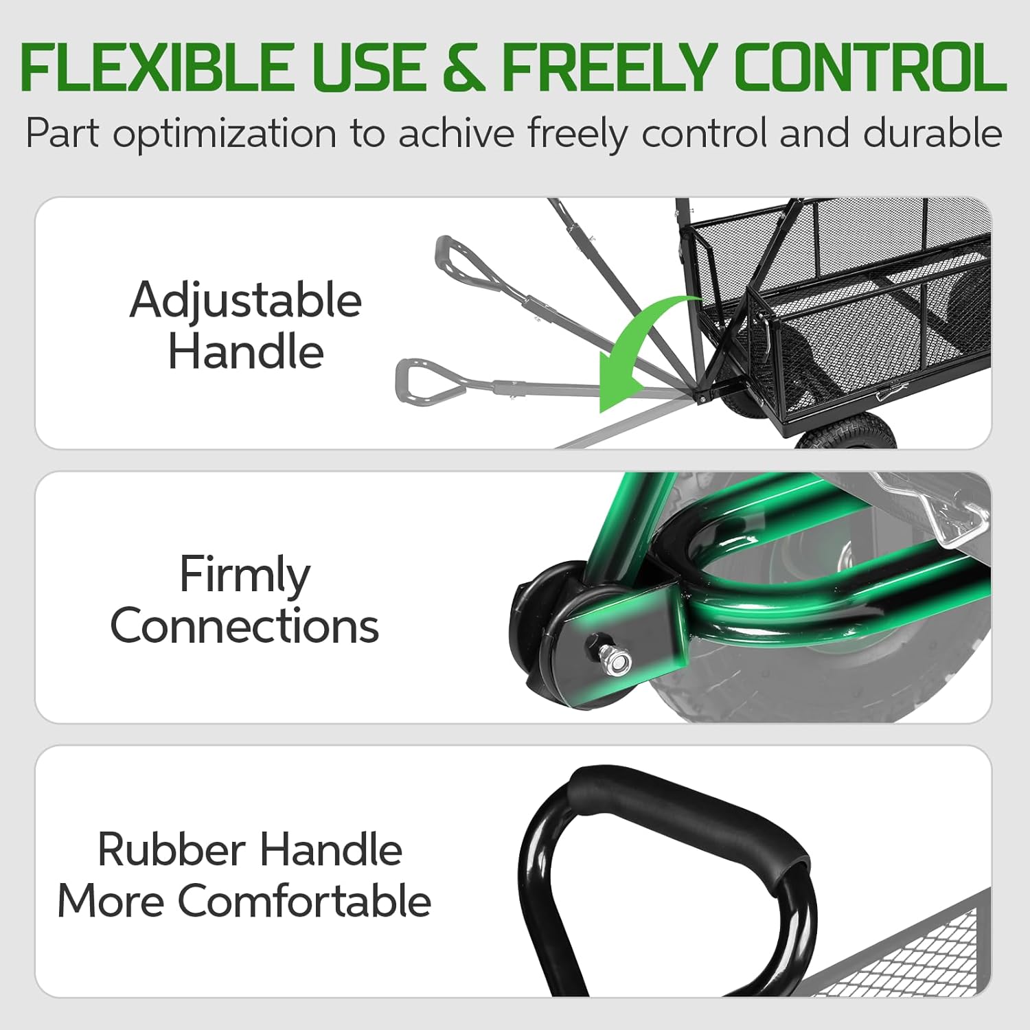 • Excellent Quality: This whole heavy duty steel garden cart features a welded integrated steel frame, and the mesh bed is made of sturdy steel, with rust-resistant coating for added durability.