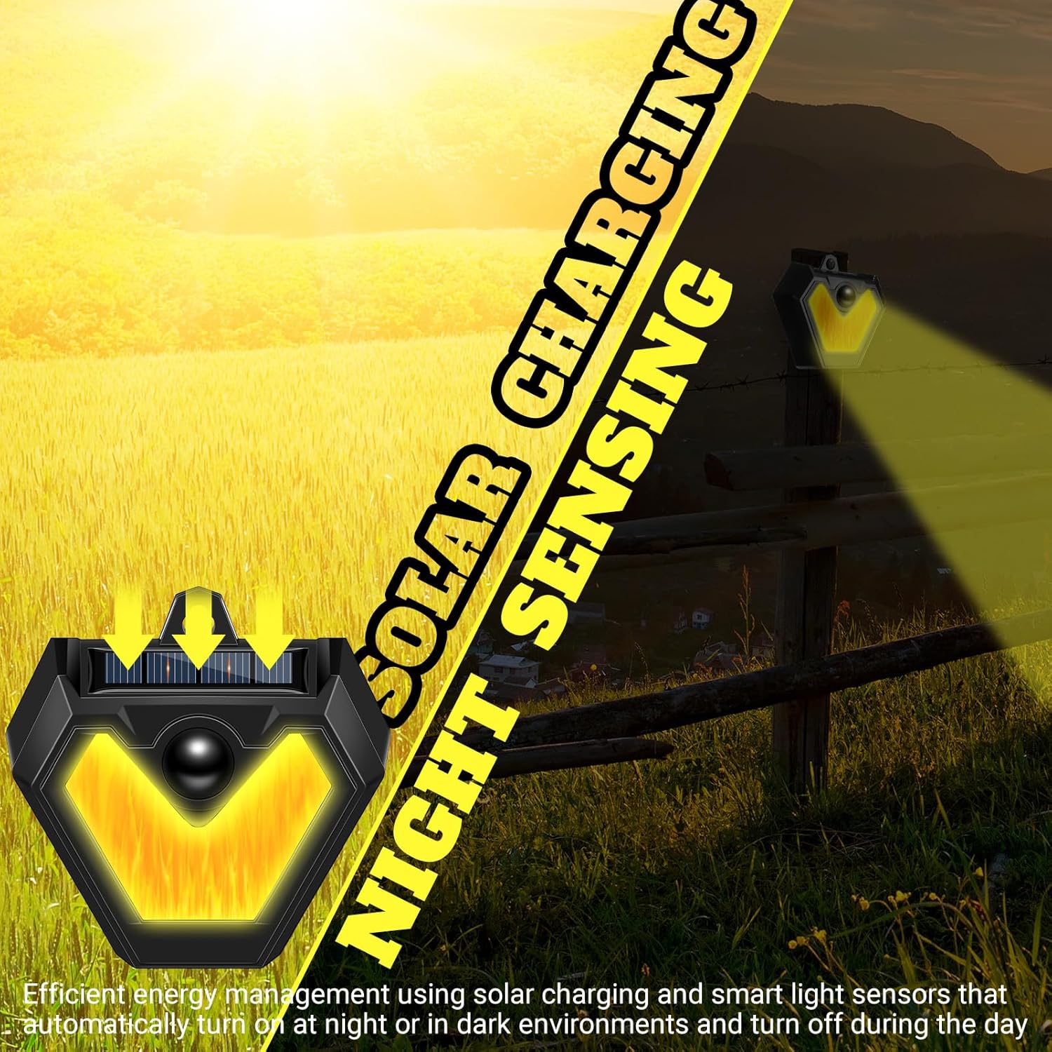 Qualirey 4 Pcs Upgraded Solar Nocturnal Animal Repeller Flickering Flame Outdoor Animal Repellent Motion Activated Coyote Deterrent Light for Skunk Deer Chicken Coop Farm Garden Yard(Orange Light)