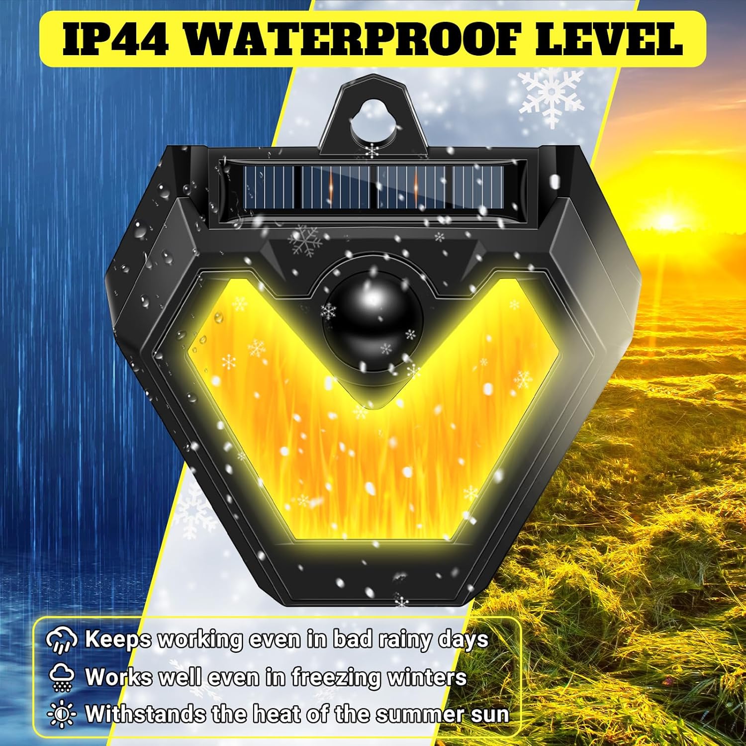 • Animal Repeller Outdoor: the animal repellent is a newly upgraded style designed for a better deterrent effect; It features a cool look with 12 flashing led lamp beads that simulates the appearance of fire, the deterrent lights can effectively scare away nocturnal animals from the coverage area