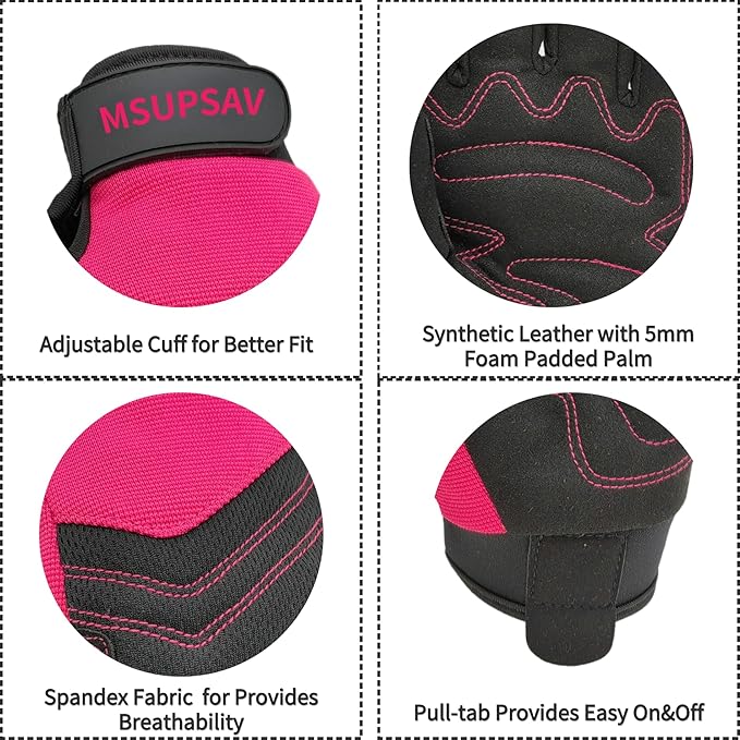 • 【MSUPSAV GARDEN GLOVES FOR GARDENING】Stretchable double-layer spandex design back keep your hands flexible,breathable&comfortable on the job. Leather with foam padded palm and reinforced fingertips increase durability.Supportive adjustable with hook& loop strips closure cuff for snug secure fit.