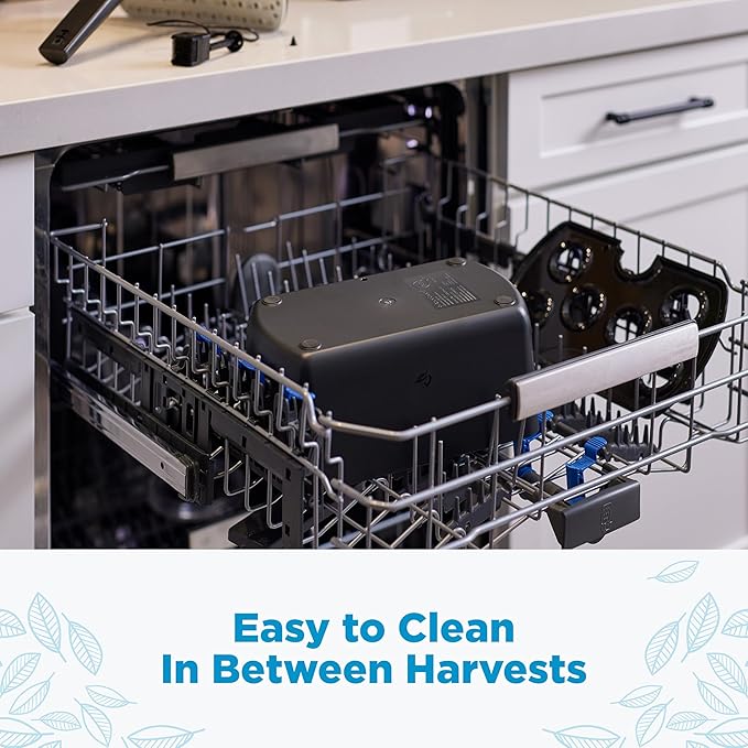 • FEATURES: In addition to its trendy aesthetics, the targeted grow light means more light on your plants and less on the surrounding area, plus the Harvest Lite features a one-button control nutrient reminder, and a dark grow deck to help prevent algae growth in the reservoir