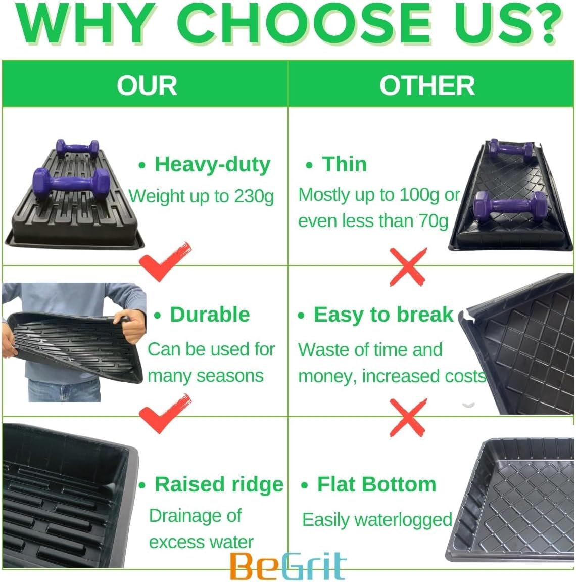 BeGrit 1020 Trays Thickened Nursery Plant Trays Seedling Tray Seed Starter Tray Microgreen Growing Tray No Drain Holes -6 Pack