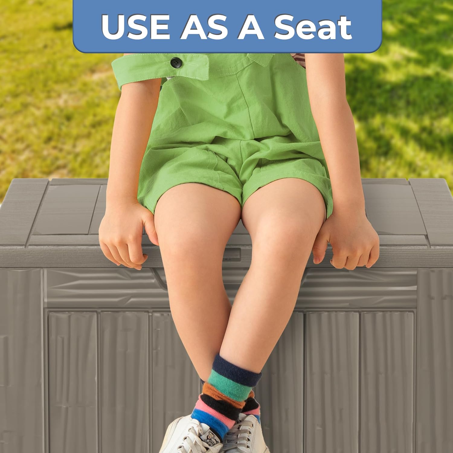 • Large Capacity: This 35-gallon deck box offers ample storage space for your outdoor accessories, and it has a 150-pound weight capacity and can be used as a separate patio seat or indoor table.