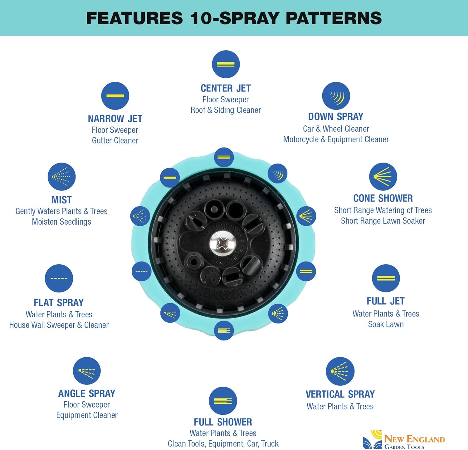 • Multi Pattern: 10 Spray Patterns for Convenience and Flexibility of Use