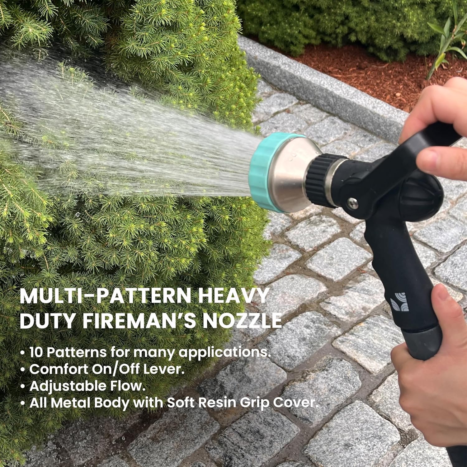 Heavy Duty Metal 10 Pattern Fireman’s Hose Nozzle 500003 with Lever Control and Comfort Grip by New England Garden Tools for Cleaning, Watering Plants & Yards, Washing Cars & Livestock