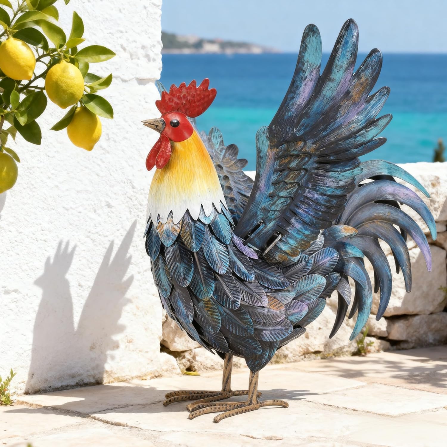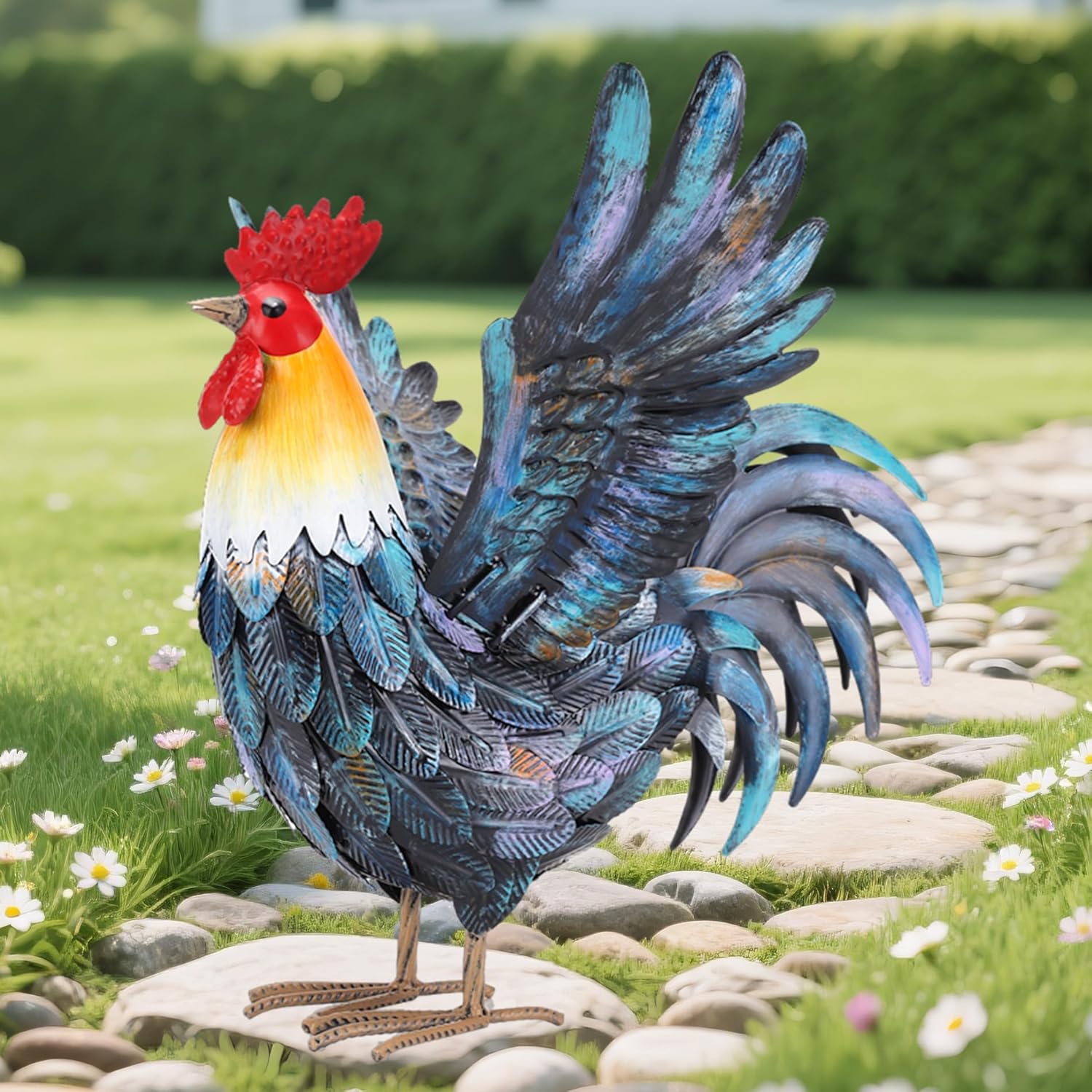 Metal Rooster Decor Garden Statue Yard Art Decoration Outdoor Chicken Kitchen Decor for Backyard Patio Kitchen Lawn for Women Mom