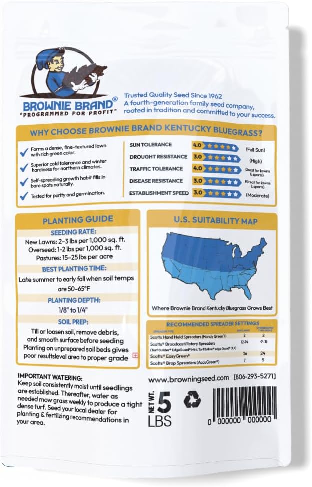 Brownie Brand Kentucky Bluegrass Seed – Premium Lawn Seed for Overseeding, Repairing Bare Spots, and Growing Thick Cool-Season Bluegrass Grass Turf