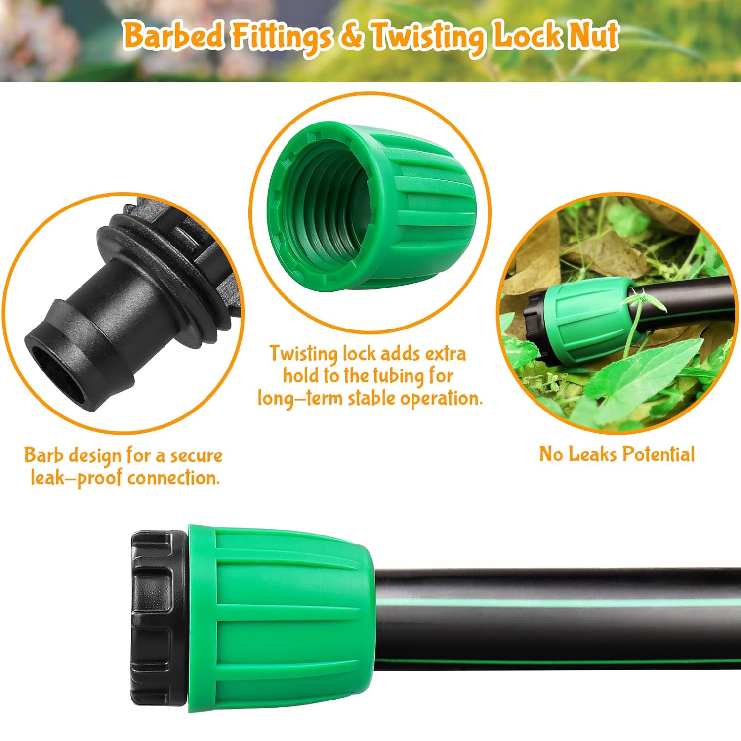 • 【Easy Installation & No Leaks】:Simply insert this 1/2 irrigation cap plugs connector, the protruding barbed ends can grab 1/2" tubing tightly for a secure leak-proof connection. Then twist the threaded nut for easy assembly and double protection. If desired you may heat the end of the tube in hot water for 10-30 seconds before inserting.