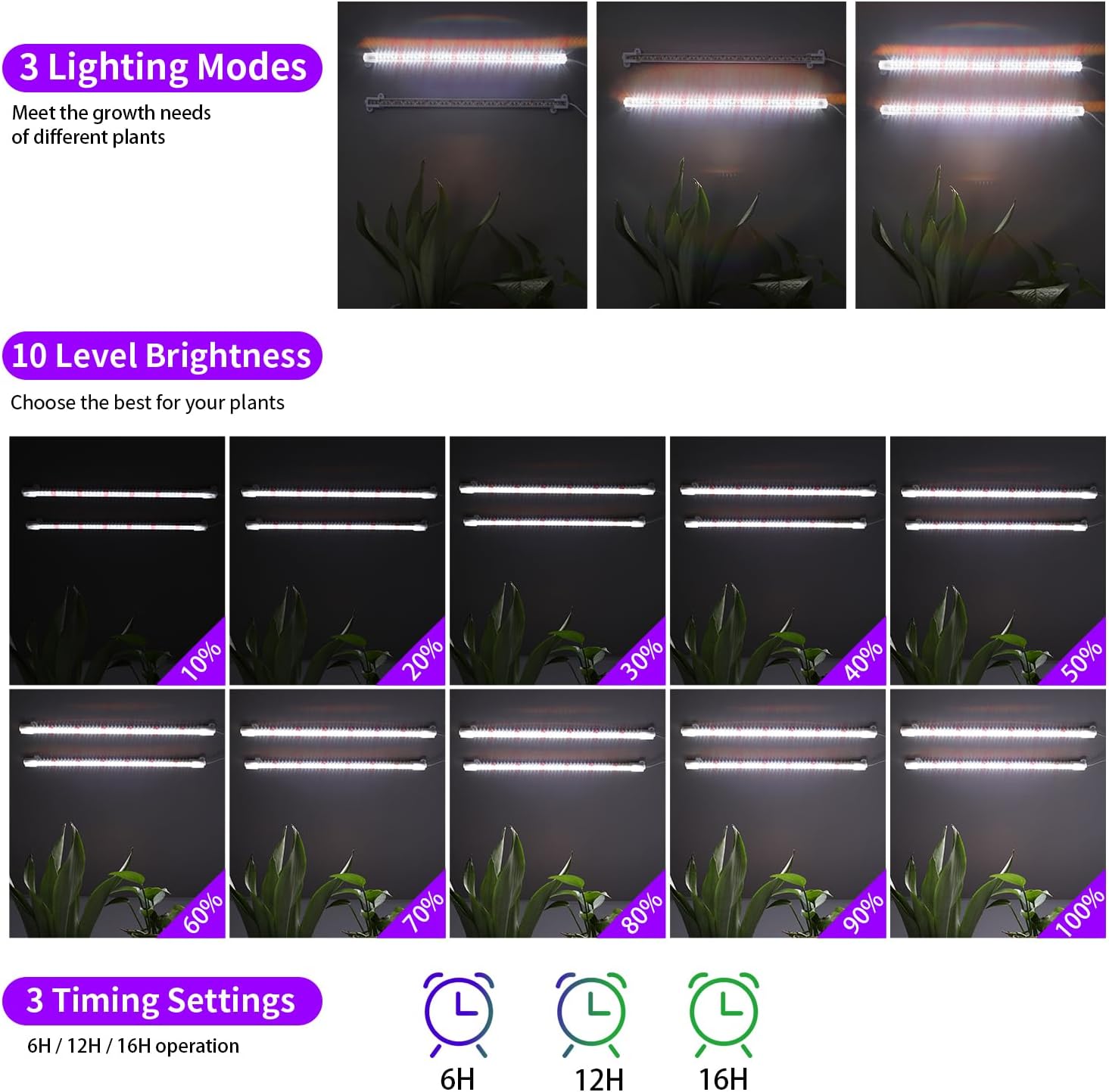 LED Grow Light Strips for Indoor Plants, 16‘’ Full Spectrum 240 LEDs with 4 Install Methods, 6/12/16H Timer, 10 Dimmable Levels, 3 Switch Modes for Seedling Succulent Sunlike Strip (2 Head 2 Pack)