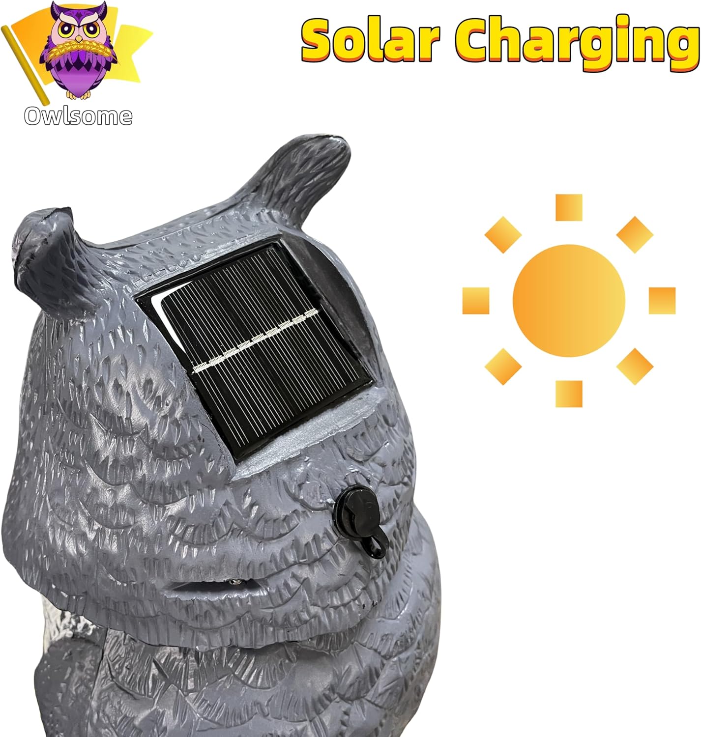 Owlsome Solar Owl with Colored Flashing Eyes, Rotating Head, Hoot Sound, Motion Detector and Silent Mode, Plastic Owl Garden Sculpture, Garden Decoration