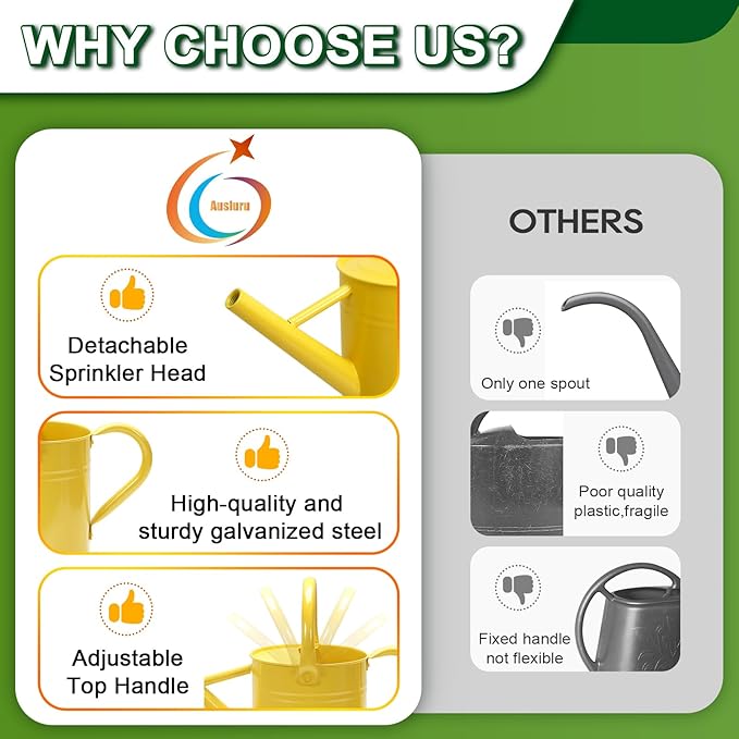 • Stylish and Functional: Whether you're a seasoned gardener or just starting out, this 1-gallon metal watering can is a stylish and functional addition to your gardening arsenal. Its elegant design and high-quality construction make it perfect for both indoor and outdoor use, simplifying the task of watering your plants.