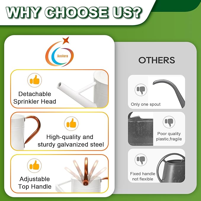 • Stylish and Functional: Whether you're a seasoned gardener or just starting out, this 1-gallon metal watering can is a stylish and functional addition to your gardening arsenal. Its elegant design and high-quality construction make it perfect for both indoor and outdoor use, simplifying the task of watering your plants.