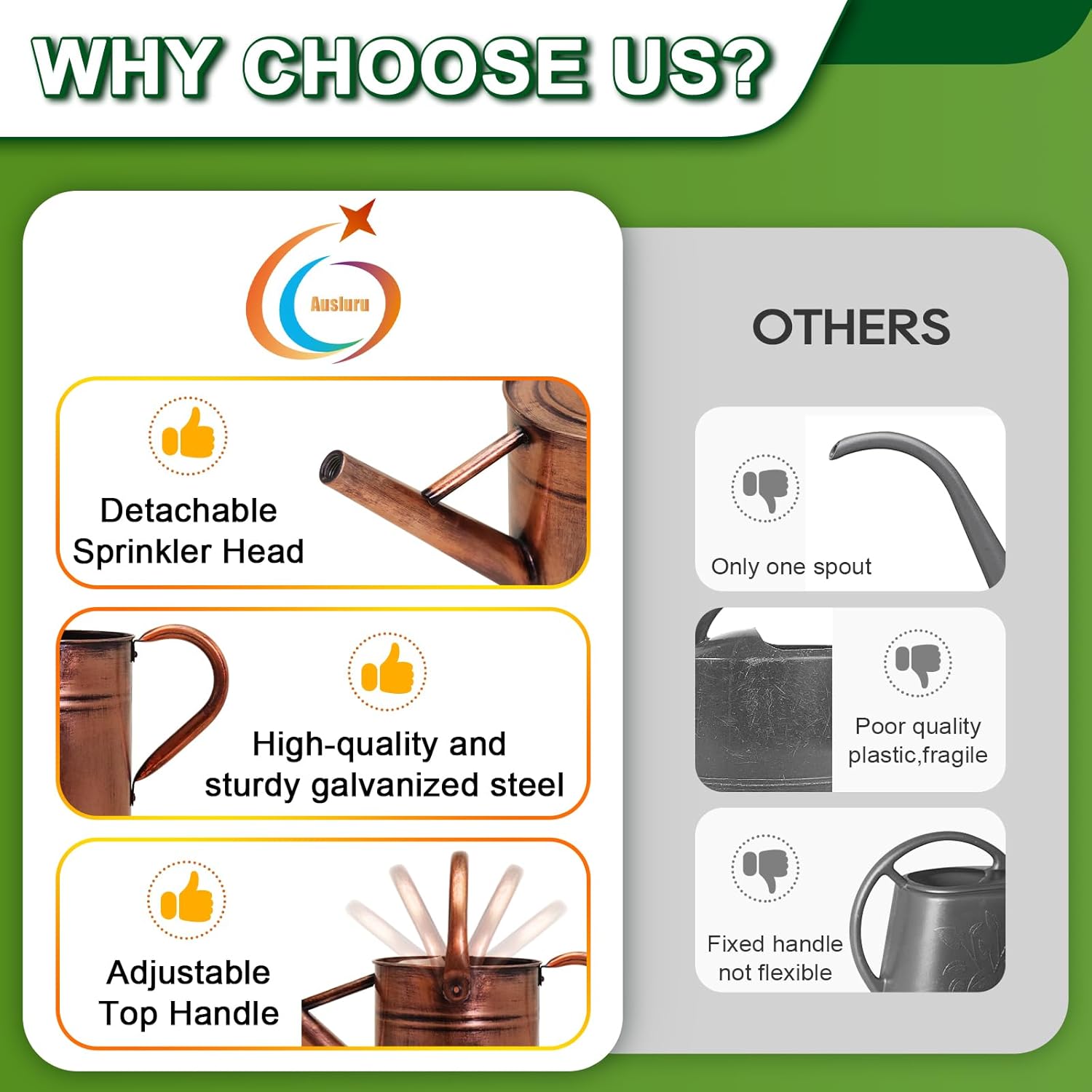 • Stylish and Functional: Whether you're a seasoned gardener or just starting out, this 1-gallon metal watering can is a stylish and functional addition to your gardening arsenal. Its elegant design and high-quality construction make it perfect for both indoor and outdoor use, simplifying the task of watering your plants.