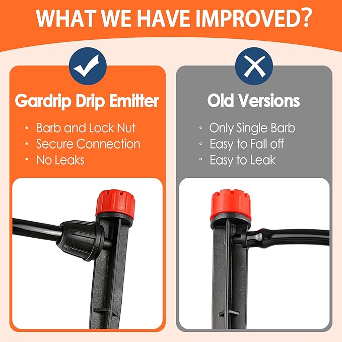 • UV-STABILIZED MATERIAL FOR LONG LIFE: Made of high quality & UV resistant plastic material,Gardrip drip irrigation emitters assure long life in the landscape. And the dripper cap are detachable and very easy to clean. Don't worry about clogging