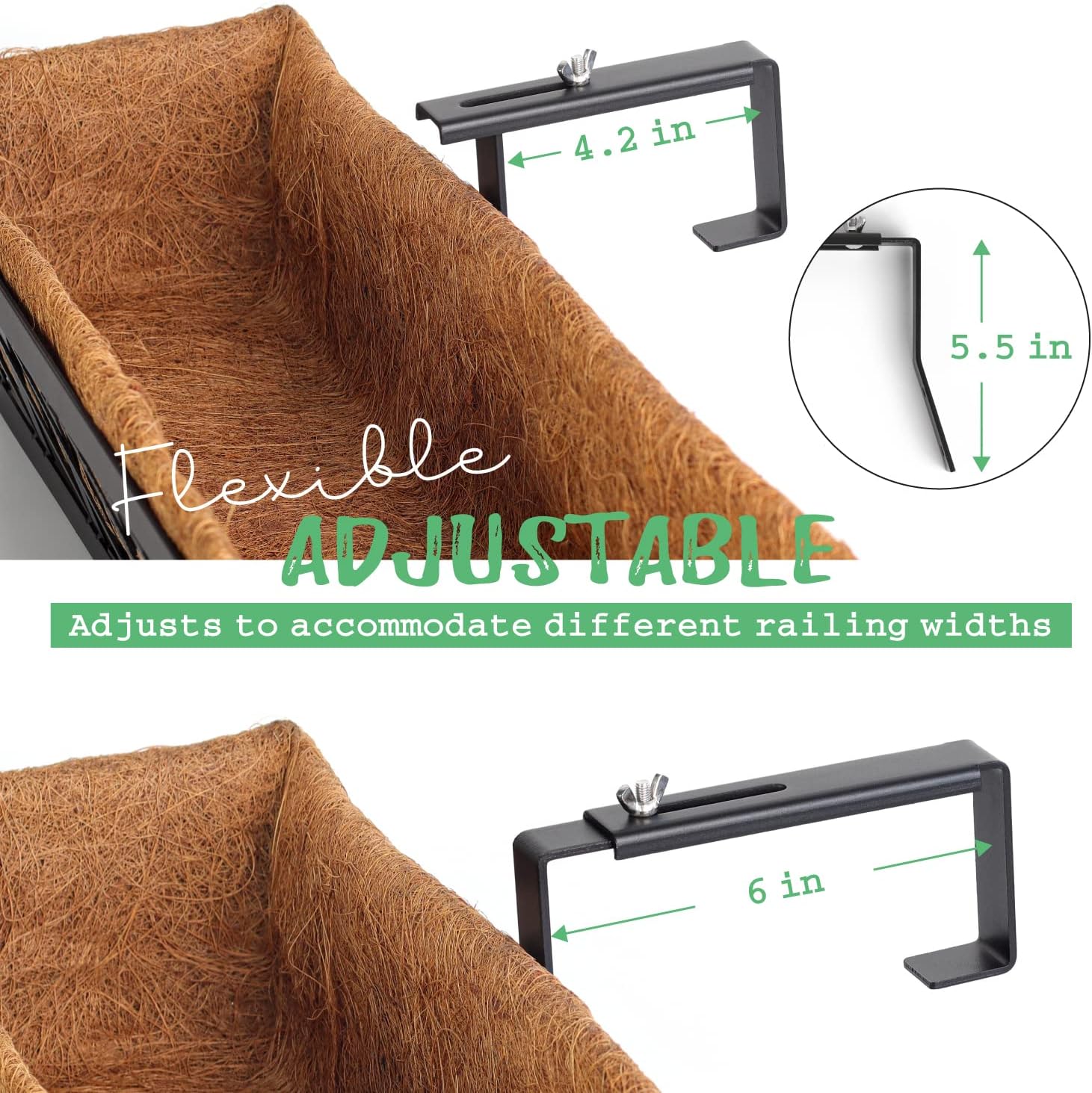 • EASY TO ASSEMLE: simple installation, place brackets at desired distance apart and secure with stainless steel screws provided and place the planter within. Lower the flower box holder’s L-shaped arms over the flat railing, and it’s ready to go! No tools are required.