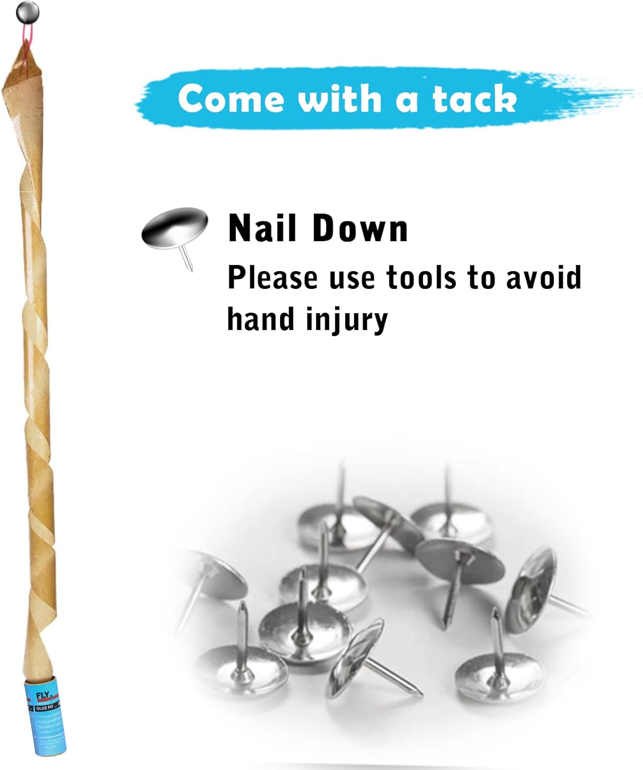 • Notice: when the weather gets hot, the gel of the fly strips melts, the blue hanging string can be easily pulled off. We suggest you prepare a rope and a pair of scissors, when a small amount of sticky paper is pulled out, poke a hole in the paper with a pair of scissors and tie your rope, at last, pull the rest out cord slowly while turning tune in a counterclockwise motion. Or nail the sticky fly paper directly to the wall. It's easier to refrigerate for a while before using it!