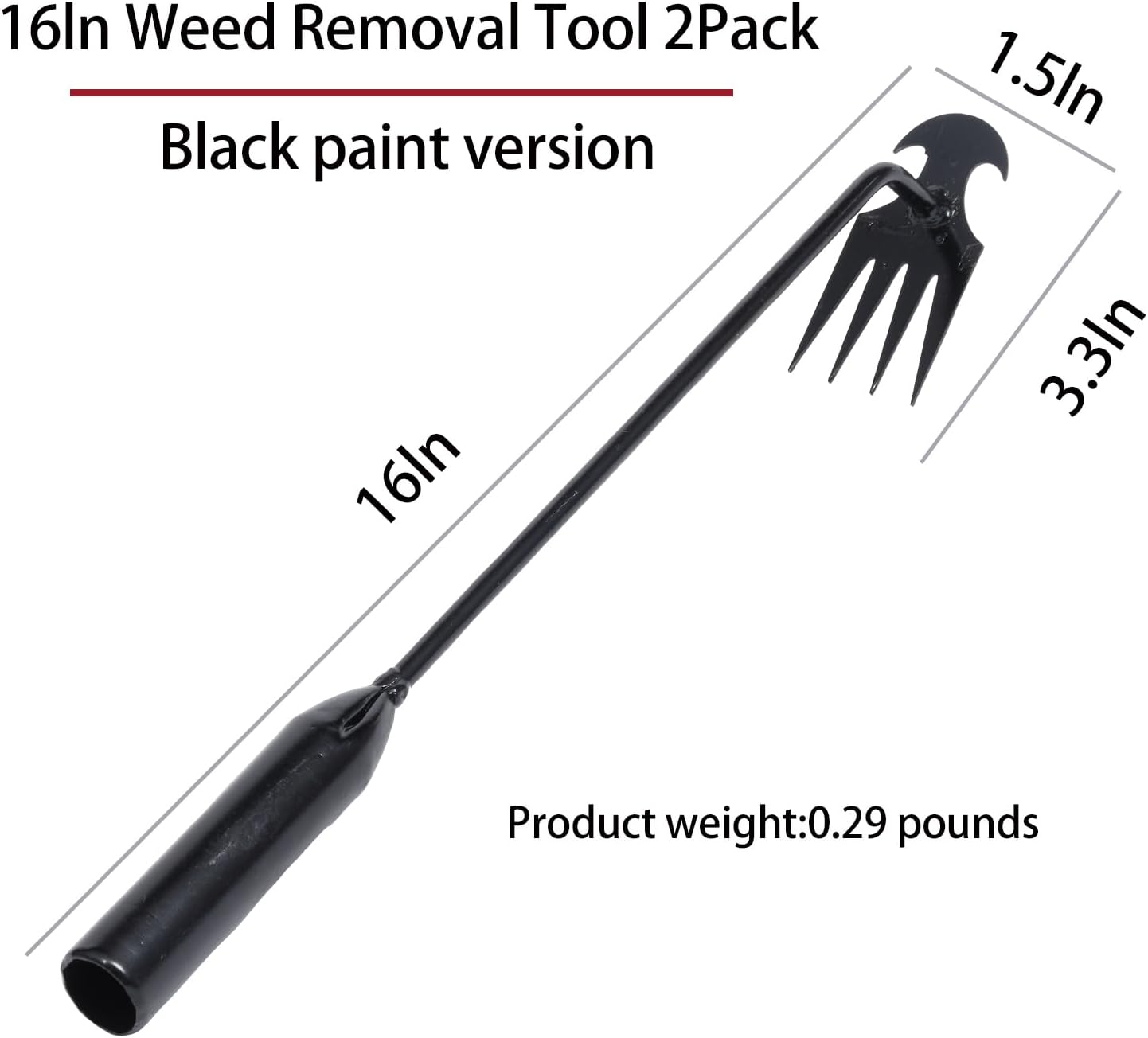 • Package comes with 2 Pcs of 16-inch weed puller tools. The extended design handle increases the range of use, suitable for many environments. Great for prying thistles, dandelions, crabgrass, chickweed and common garden weeds, or other weeding and digging tasks in the garden, yard or farm