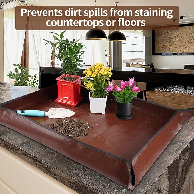 • ✅ Great Ideas: The copper buckles on the 4 corners are very useful to prevent water and dirt from spilling and avoid staining the floor or tabletop. Cleanup is a breeze with this repotting mat! No more putting off needed plant care because of messes on the kitchen counters and floors! Great concept!