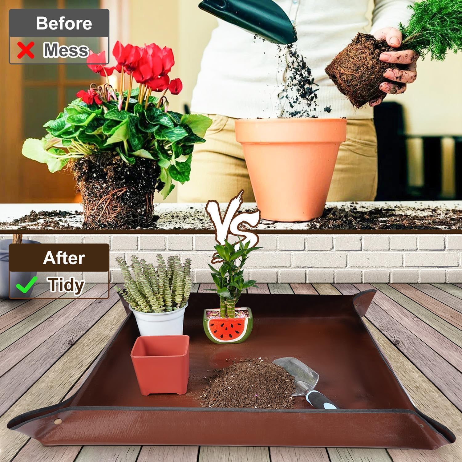 27"x 27" Repotting Mat for Indoor Plant Transplanting and Mess Control Foldable Waterproof Potting Tray-Easy to Clean Gardening Gifts for Plant Lovers