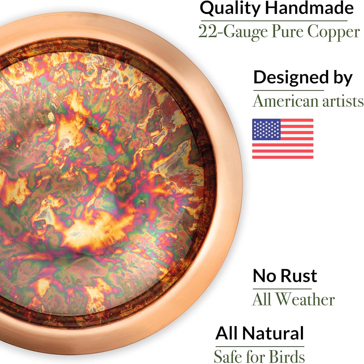 • SAFE FOR BIRDS: Copper baths are a bird's best choice. Natural lack of harmful coatings, and natural patina makes it reliable and ideal for bird habitat.