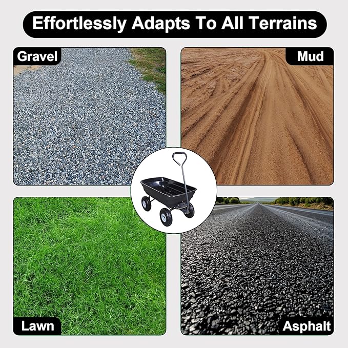 • Multi-function/wide applications: whether it's moving agricultural equipment, handling firewood, tools, disposing of debris or other supplies. This garden cart is versatile and reliable. It is perfect for gardens, farms, barns, yards, beaches, rocks or other outdoor work. Safe, reliable and easy to use.