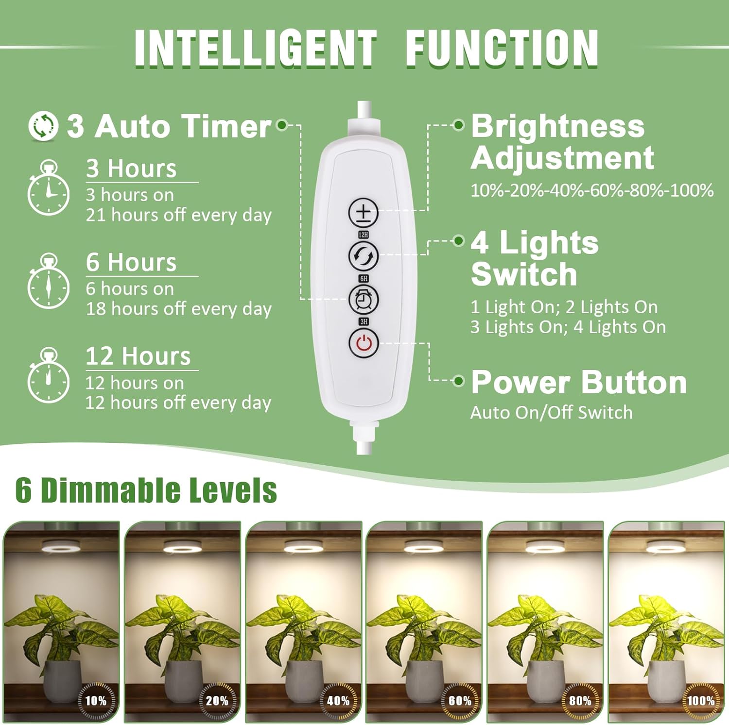 • Convenient Auto Timer Function: LORDEM plant grow light is equipped with a timer function, allowing you to set the lighting duration for 3, 6, or 12 hours. The light will automatically turn on and off at the designated time every day, providing a hassle-free lighting cycle.