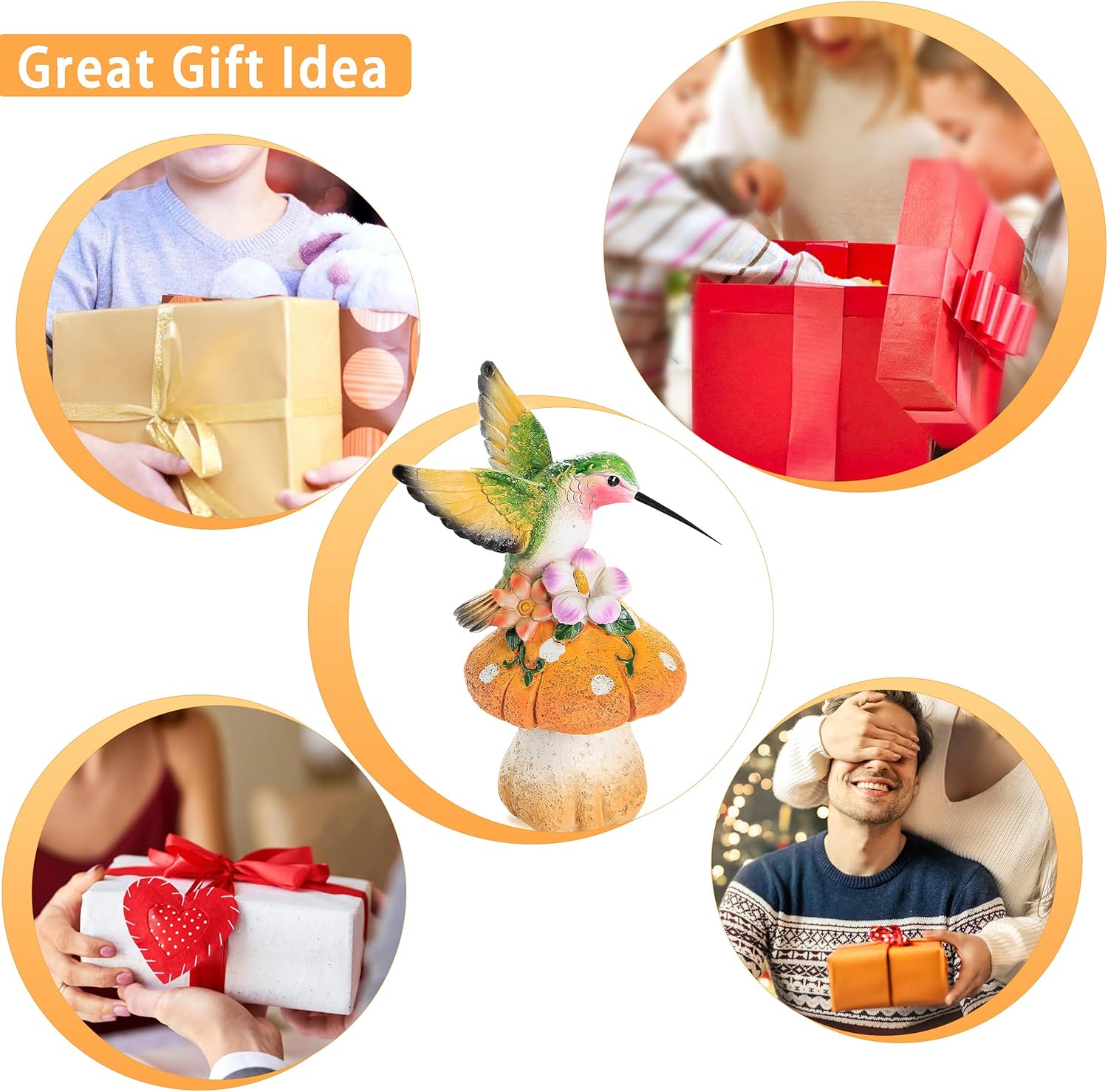 Hummingbird Stand on Mushroom for Garden Decorations,Hummingbird Statue for Outdoor Backyard Yard Porch Patio Lawn Outside Indoor Home Shelf Decor Accents,Bird Sculpture Figurine