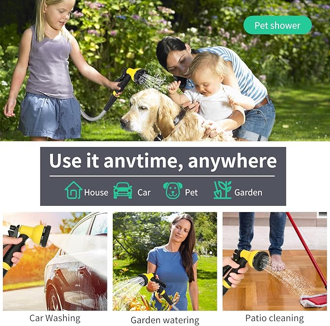 • 10-Function Nozzle: This garden hose comes with a blue nozzle that offers 10 unique spraying modes, providing the perfect setting for everything from car washing to watering plants, bathing pets, and even playing in the yard. This nozzle is ergonomically designed with a non-slip handle and durable metal ring for comfortable and convenient use