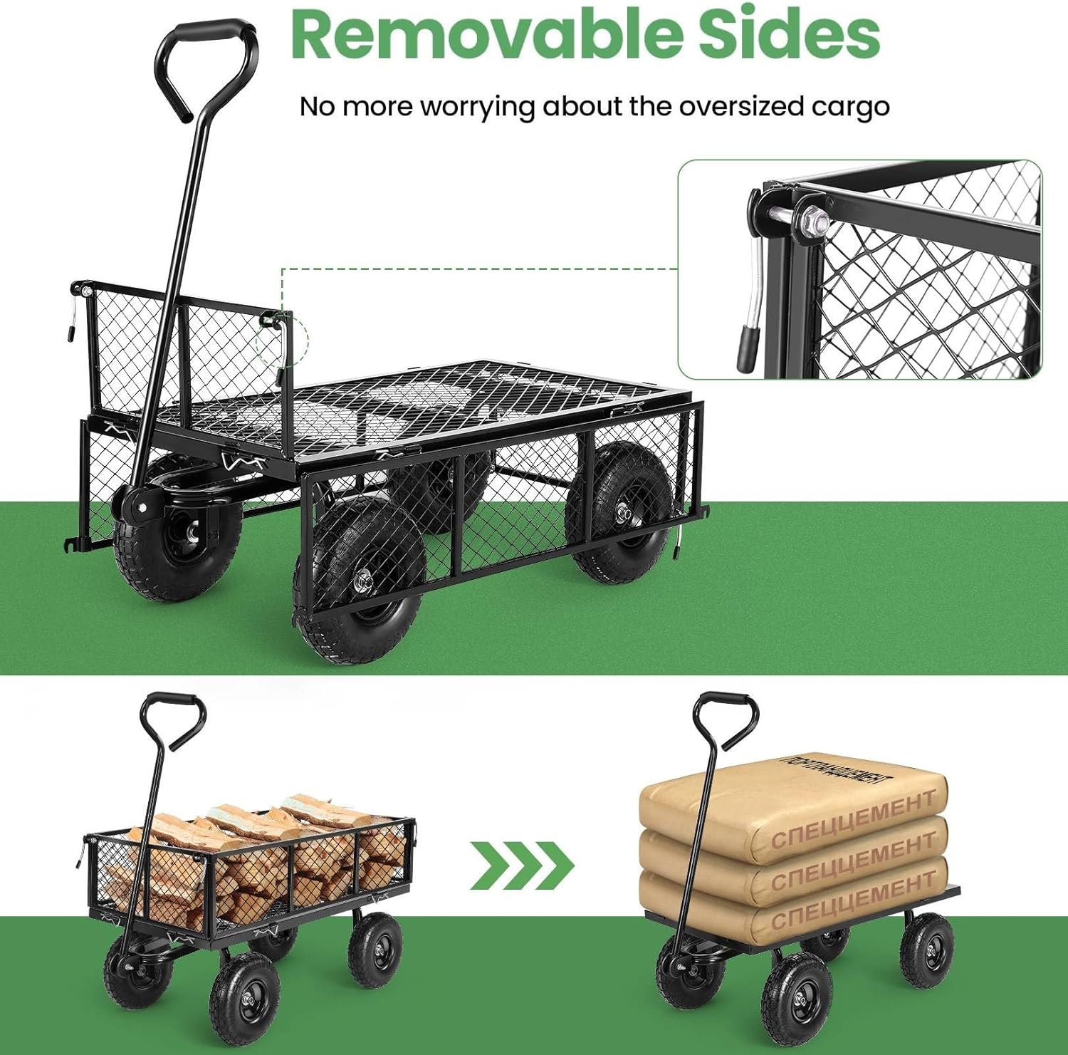 Homdox 660LB Garden Cart on Wheels, Heavy Duty Yard Wagon with 180° Rotating Handle, Mesh Foldable Garden Wagon Outdoor Utility Carts for Camping, Sports, Garden, Beach, Farm, Fishing, Black