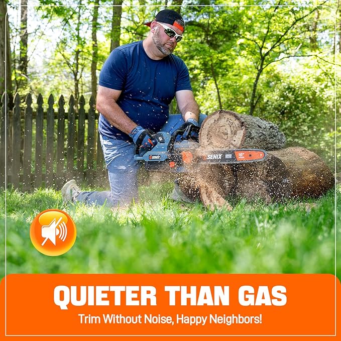 • EFFORTLESS MAINTENANCE & PRECISION CONTROL: SENIX chain saw features tool-free tensioning and automatic oiling. ECO Mode optimizes this 16 inch chainsaw battery included tool for energy efficiency while tackling delicate pruning tasks.