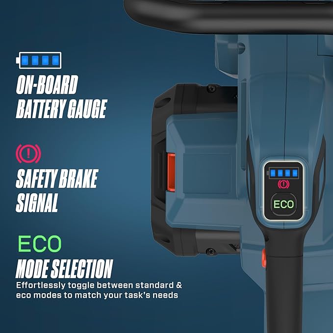 • EFFORTLESS MAINTENANCE & PRECISION CONTROL: SENIX chain saw features tool-free tensioning and automatic oiling. ECO Mode optimizes this 18 inch chainsaw battery included tool for energy efficiency while tackling delicate pruning tasks.