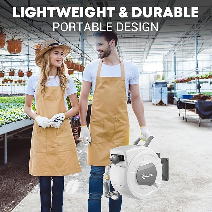 • 【Tangle-Free & Smooth Auto-Retraction】Enjoy uninterrupted, kink-resistant watering with SILVEL’s retractable hose reel. The automatic locking mechanism holds the hose securely at any length—no more tangles or interruptions. When done, the gentle slow-retract system smoothly winds the hose back automatically, making storage neat and effortless.