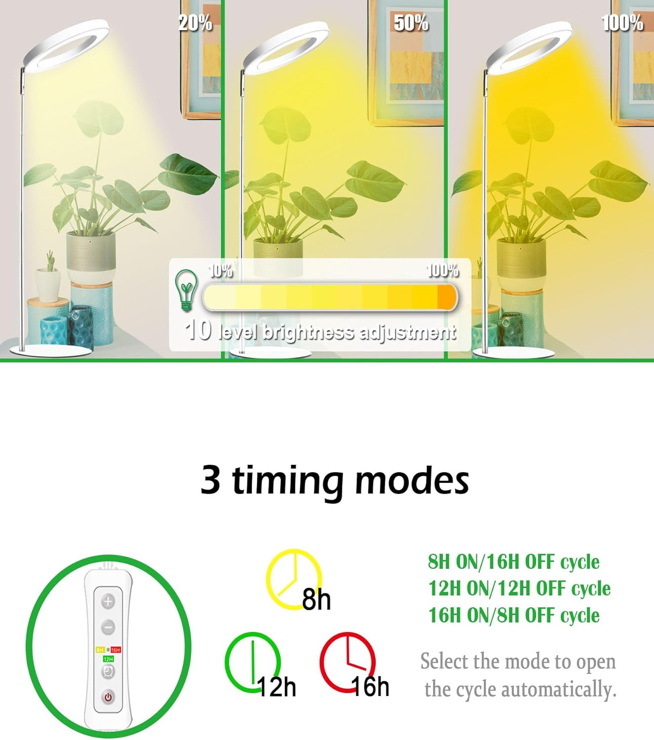 • Automatic Timer,On/Off Switch: The lamp operates from a built-in timer with 3 modes cycle timing function which stay on for 8/12/16 hour and off for 16/12/8 hours. The timer sets itself when one plugs-in,full control when the light turns on and off, simply by on/off switch as you needed,no need to unplug/re-plug.
