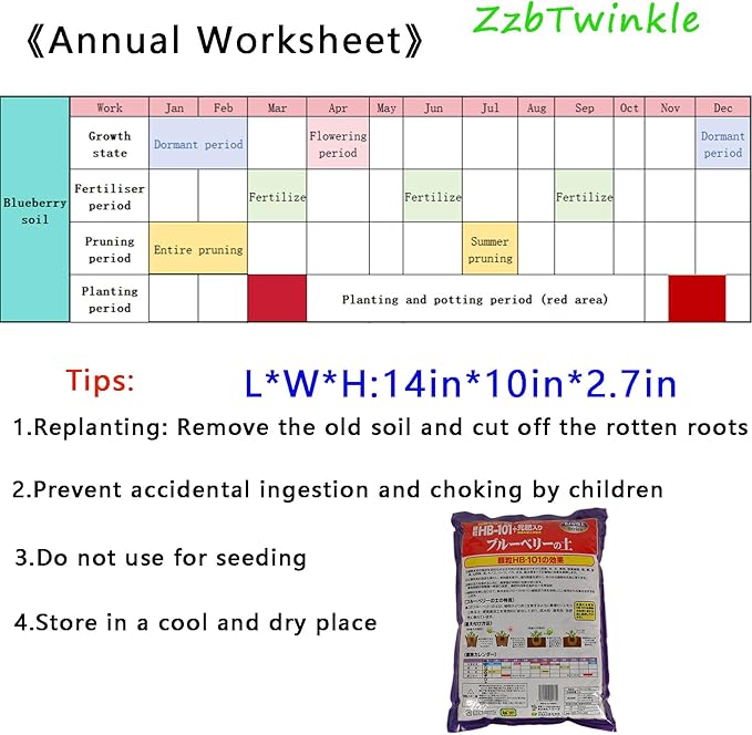• PROFESSIONALISM - Premium granular soil mix made by Japanese professionals, excellent drainage and root growth environment, targeted to provide more comprehensive growing conditions for blueberry trees