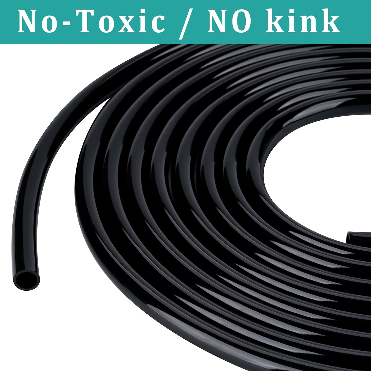 • Easy to use and storage - The black tubing is wear-resistant, resistant to aging, and resistant to acid and alkali chemicals. It can withstand rough handling and repeated use, easy to shape, bend and install, and can be easily cut with any cutting tool for your need length. It also coils easily for storage and transport.