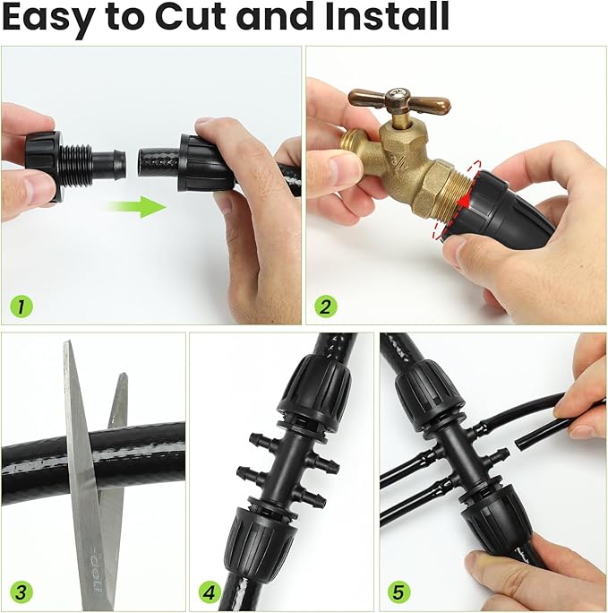 • 4 Packs Connectors included - Our connectors divide the 1/2" tubing into 4 1/4" branches, effectively increasing water pressure and solving end-of-system water scarcity issues.