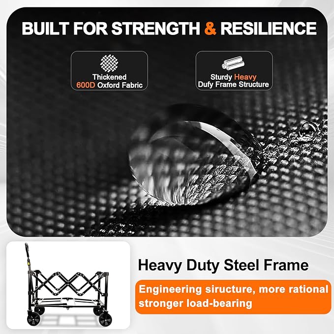 • AFTER SALES - EASY TO ASSEMBLE - COLLAPSIBLE WAGON: The wagon will come with an instruction manual when you receive it, so even a child can easily assemble it easier than assembling blocks, and it can be put into use at any time. Whether you're going camping, surprise shopping, or tidying up the garden, the AMNOW wagon is your faithful companion. We also offer a one-year warranty, so if you have any problems during use, please contact us promptly